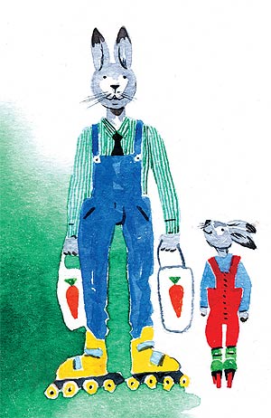 Кролики Рано утром, встав на ролики, Распугав цыплят, гусей, Мчатся в школу дети-кролики По асфальту — кто быстрей?! А за ними — папы-кролики, Позабыв про лимузин, Тоже катятся на роликах За морковкой в магазин.