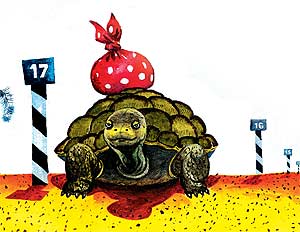 По пустыне, по прямой Черепаха шла домой. Отправлялась в путь чуть свет, Шла домой семнадцать лет.