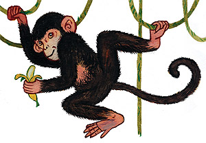 Ой, мартышка-коротышка, Без тебя скучает книжка. Приходи к нам поскорее, Развесёлая мартышка!
