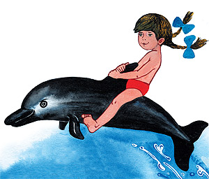 Он свою подставит спину И с собой возьмёт Марину, И помчится по волнам, А потом вернётся к нам.