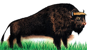 Зубр космат и очень страшен, А на самом-то на деле Он не страшен, просто важен — На него доху надели.