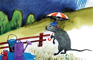 Мышка С неба дождик поливает, И на дождик, в небеса, Смотрит мышка полевая: Это что за чудеса? Капли падают, сверкают, Поливают огород, Мышкин хвостик поливают, Только хвостик не растёт.