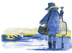 По Байкалу стук да скок Мой рыбацкий посох. У отдушины белёк Спрятался в торосах. Нерпа замерла на льду, Солнце держит в ластах. Я отважно подойду И скажу ей: – Здравствуй!